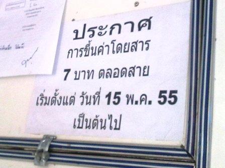 帰りのソンテウは運賃が7バーツに値上げと貼り紙が。